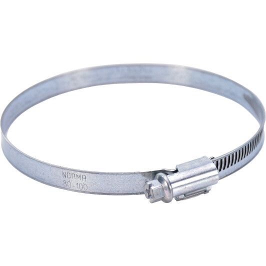Хомут Norma 80-100/12С7W1 металевий призначений для закріплення гумових трубок та патрубків на посадочних місцях та надійного утримання їх у процесі експлуатації. Хомут виготовлений з оцинкованої сталі та має досить жорстку конструкцію. При повороті затяжного гвинта хомута різьблення гвинта переміщає металеву рухому стрічку з розташованими на ній насічками. При затягуванні гвинт блокує відпускання стрічки та надійно фіксується. Хомут може бути використаний для будь-яких проміжних діаметрів згідно з вказаною на стрічці хомута різниці кріпильних діаметрів. Хомут металевий забезпечує надійне та довговічне кріплення шлангів, трубок, патрубків на їх посадкових місцях незалежно від умов, в яких він встановлений. Хомут стійкий до корозійного впливу довкілля.