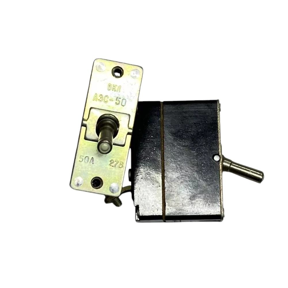 Автоматичний вимикач АЗС-50, призначений для автоматичного відключення споживачів електроенергії при перевантаженнях та коротких замиканнях у ланцюгах постійного струму при напрузі до 30В у закритих стаціонарних та пересувних установках.