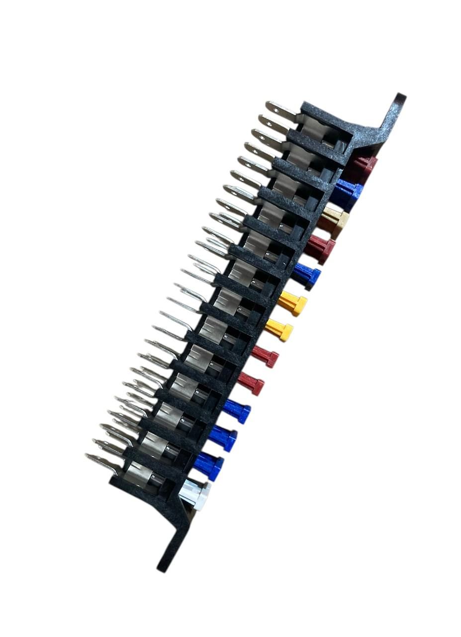 Блок запобіжників укомплектований запобіжниками ножового типу та призначений для захисту електричних кіл автомобілів при перевантаженнях та коротких замиканнях.