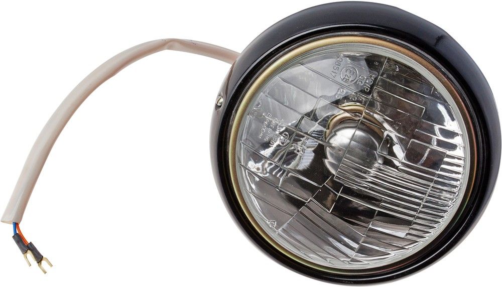 Фара металева ФГ 122. Зроблено із заліза. Задня кришка кругла. Виконує функції ближнього та дальнього світла. Підключення за допомогою дроту довжиною 425 мм з вільчастими наконечниками.