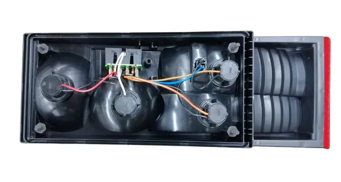 Включає: задні габаритні ліхтарі, стоп-сигнали, задні покажчики поворотів, ліхтарі аварійної сигналізації, ліхтар заднього ходу і задній протитуманний ліхтар.