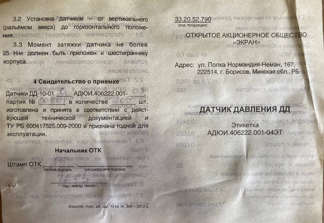 Датчики витримують перевантаження тиском, що перевищує на 50% верхня межа діапазону показань.