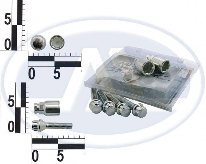 Болт 12х45 коліс хром конус секретки (2 ключі) (ш 1.5) (4 шт) (блистер) 375130 Н2 (вир-во WALLINE)