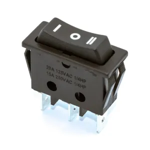 Перемикач (ON)-OFF-(ON) (3pin) чорний вузький, без фіксації, 15А, 3pin KCD3-123-4