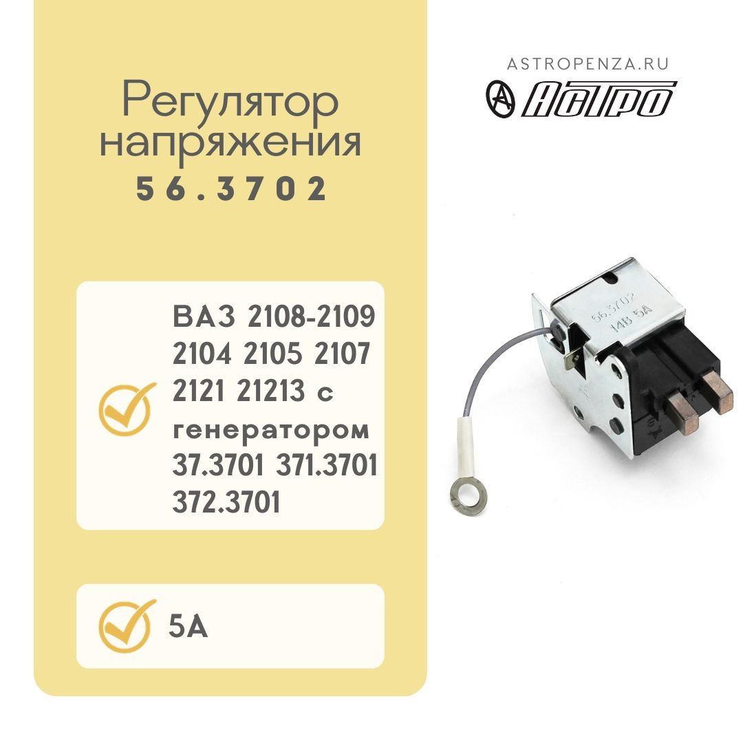 Регулятор напруги ВАЗ 2108-04-07 із щітками 56.3702 (вир-во АСТРО)